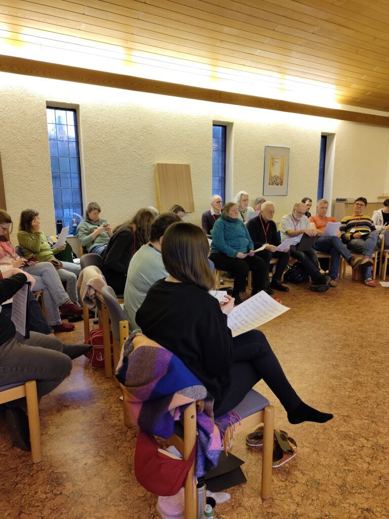 Und es wurde nicht nur gesungen – auch für sozialen Austausch und Gemeinschaft war viel Zeit. Bei schönstem Schwarzwaldwetter gingen wir am Samstagnachmittag gemeinsam spazieren, einige trafen sich zur gemeinsamen Dehn- und Yogaeinheit im Chorsaal und die besonders Sportlichen unter uns bildeten eine Laufgruppe. Auch die Abende verliefen heiter und gesellig, mit Snacks, gutem Wein und noch besseren Gesprächen.